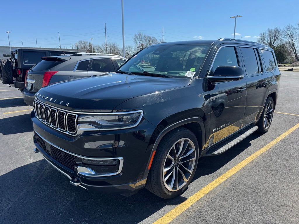 New Price! Areas Highest Quality Inventory!, FULLY SERVICED FOR YOU, INTERNET BEST BUY!!, *115 POINT SERVICE INSPECTION COMPLETED, 3rd Row Seating, Adaptive Cruise Control, Apple CarPlay / Android Auto, Blind Spot Monitors, Bluetooth, CLIMATE PACKAGE, Collision Avoidance System, Collision Warning Alert System, Drowsiness Alert, DVD / Rear Entertainment System, FULL POWER, Heated and Cooled Seats, Keyless Access w/ Push Button Start, Lane Keeping Assist, LEATHER SEATS, Lowest Pricing Guarantee, Navigation System / GPS, Power Sunroof/ Moonroof, Premium Wheels, PRICED TO SELL FAST, Rear Backup Camera, REMOTE START, Sunroof / Moonroof, TRAILER TOW PACKAGE, Voice Recognition, Wagoneer Series II, 4D Sport Utility, 5.7L V8, 8-Speed Automatic, 4WD, Diamond Black Crystal Pearlcoat, Global Black w/Leather Trimmed Bucket Seats, 2nd Row Manual Window Shades, 3 Panel Sunroof, 60/40 Power Recline 3rd Row Seat, 7-Passenger Seating, Adjustable Roof Rail Crossbars, All-Season Floor Mats, Amazon Fire TV Built-In, Auto High Beam Headlamp Control, Cargo Cover, Cargo Tray, Convenience Group I, Drowsy Driver Detection, Flexible Seating Group, Floor Console w/Cupholder, HD Trailer Tow Package, Heads-Up Display, Heated Second Row Seats, Heavy-Duty Engine Cooling, Intersection Collision Assist System, MOPAR Interior Protection Package, Navigation System, P&P Park & Unpark Assist w/Stop System, Power Tip/Slide Recline 2nd Row Buckets, Premium Group I (DISC), Quick Order Package 22J, Rear Seat Video Group 1, Reversible Carpet/Vinyl Cargo Mat, Seatback Video Screens, Surround View Camera System, Traffic Sign Recognition, Trailer Brake Control, Trailer Hitch Line-Up Assist, Trailer Hitch Zoom, Video USB Port.